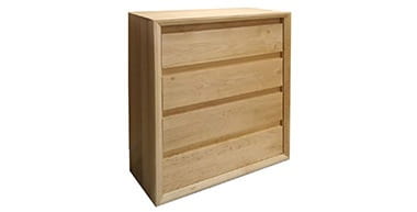 Komoda z czterema szufladami EKODOM to komoda wykonana z naturalnego drewna olchowego lub dębowego Jej rozmiar nie jest duży, więc pasuje do mniejszych wnętrz, natomiast wielość szuflad sprawia, że jest bardzo praktyczna. Podobnie jak inne komody Ekodom, szuflady są zamontowane na prowadnicach kulkowych z cichym domykiem, a zamiast uchwytów fronty zostały wyposażone w specjalny frez umożliwiający otwieranie. Komoda może stanowić samodzielny mebel, ale pięknie komponuje się z łóżkami o ażurowych wezgłowiach i szafkami nocnymi linii M-Form i L-Form.