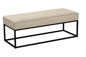Nowoczesna ławka na prostym, metalowym stelażu z tapicerowanym prostym siedziskiem. Wybór tkanin spośród kilkuset wzorów.