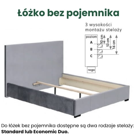 * Wymiar dotyczy rozmiaru materacaPrzy wyborze łóżka bez pojemnika dokup stelaż.