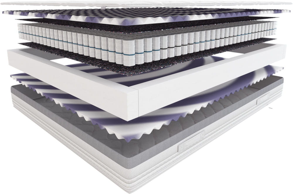 Materac o wysokiej elastyczności punktowej gwarantujący optymalne wsparcie i dopasowanie do ciężaru ciała, dzięki czemu partner śpiący obok nie odczuwa żadnych ruchów.