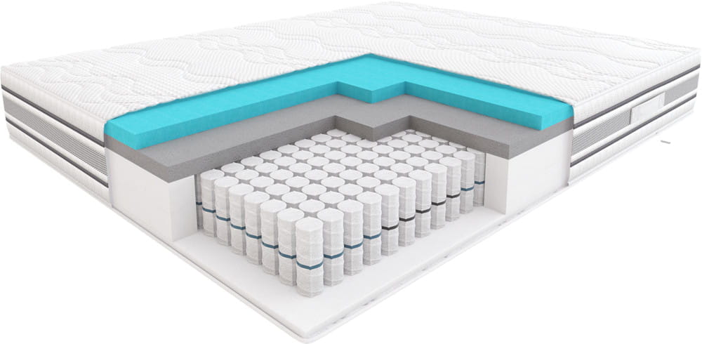 Materac o wysokiej elastyczności punktowej gwarantujący optymalne wsparcie i dopasowanie do ciężaru ciała, dzięki czemu partner śpiący obok nie odczuwa żadnych ruchów.
