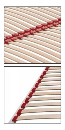— Gięte listwy z drewna brzozowego – wykonane z klejonej warstwowo sklejki brzozowej, dzięki swojej krzywiźnie amortyzują nacisk ciała i zwiększają komfort snu