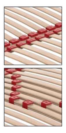— Gięte listwy z drewna brzozowego – wykonane z klejonej warstwowo sklejki brzozowej, dzięki swojej krzywiźnie amortyzują nacisk ciała i zwiększają komfort snu
